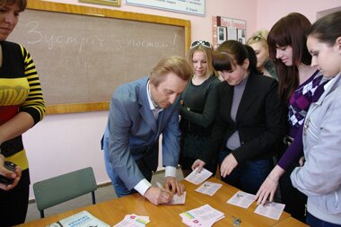 29 квітня 2011 р. Олександр Високий відвідав Макіївський економіко-гуманітарний інститут і виступив перед студентами та викладачами спеціальностей "Українська мова та література", "Мова та література. Англійська" гуманітарного факультету: |